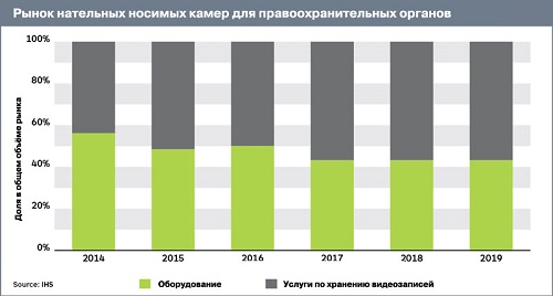 Рынок нательных носимых камер быстро развивается и по итогам 2014 года достиг объёма 60 млн долларов. Специалисты исследовательской компании IHS Technology, которые произвели подсчёт данной суммы, определили, что две её составляющие будут развиваться неравномерно. До 2019 года та доля, которую на этом рынке составляют услуги, будет расти быстрее, чем продажи оборудования. Основной вид этих услуг — «облачное» хранение записей.